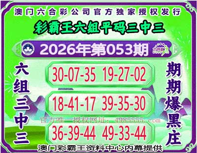 062期:〖彩霸王〗🌸6组3中3🌸