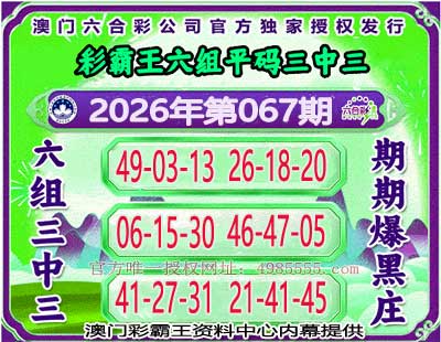 067期:〖彩霸王〗🌸6组3中3🌸