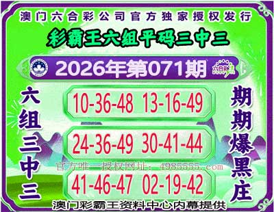 071期:〖彩霸王〗🌸6组3中3🌸